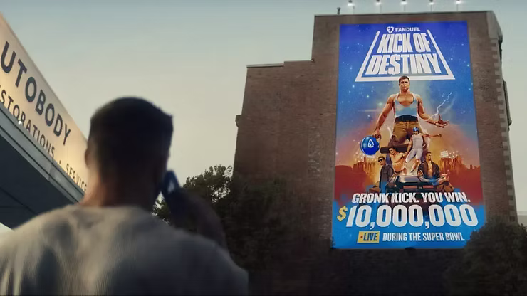 This ad had so much potential but just fell short. FanDuel did a great job building hype around the $10M Kick of Destiny leading up to Super Bowl Sunday. Any FanDuel better who put down $5 or more would win a share of the $10M if Gronk nails this kick.